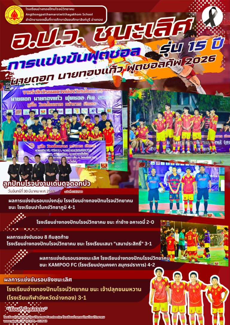 อ.ป.ว. ชนะเลิศการแข่งขันฟุตซอลนายดอก นายทองแก้ว ฟุตซอลคัพ 20262 เมษายน 2026โดยโรงเรียนอ่างทองปัทมโรจน์วิทยาคมวันที่2 เมษายน 2026Read more→