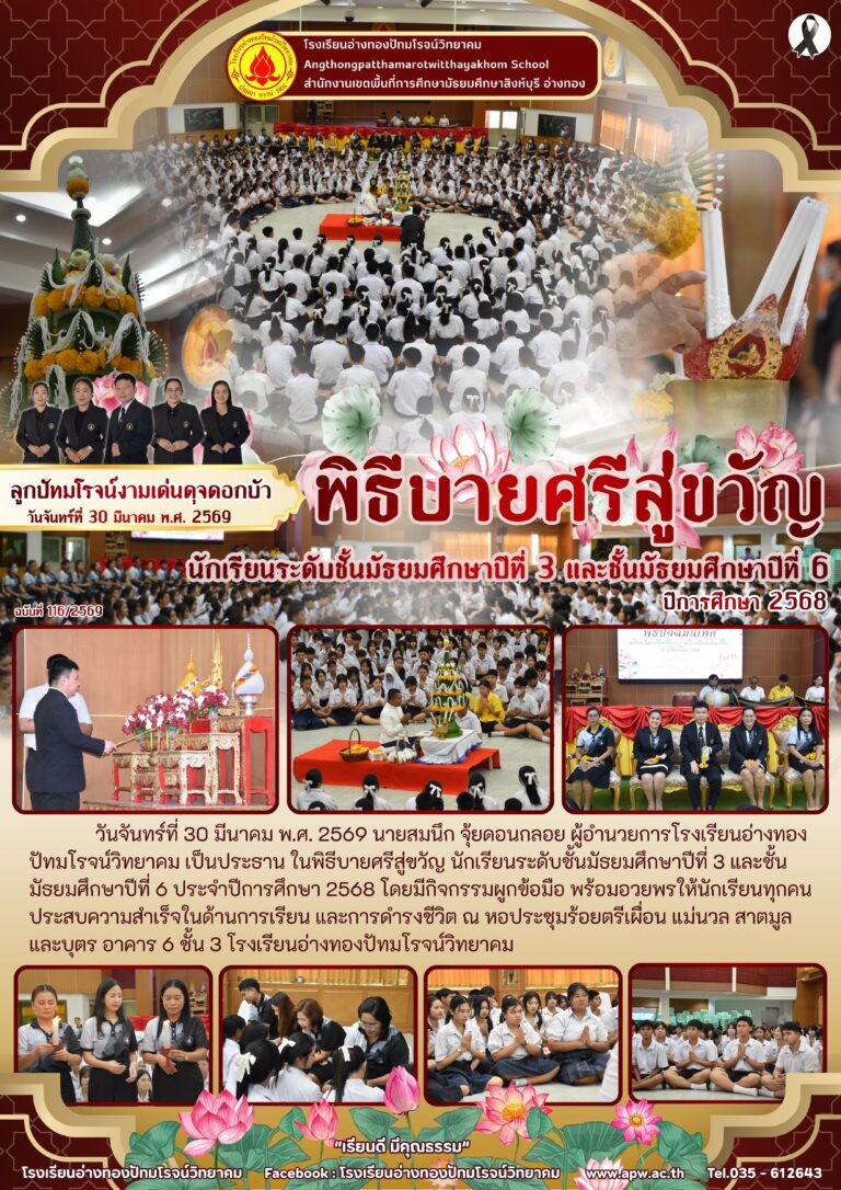 อ.ป.ว. จัดพิธีบายศรีสู่ขวัญนักเรียนระดับชั้นมัธยมศึกษาปีที่ 3 และชั้นมัธยมศึกษาปีที่ 62 เมษายน 2026โดยโรงเรียนอ่างทองปัทมโรจน์วิทยาคมวันที่2 เมษายน 2026Read more→