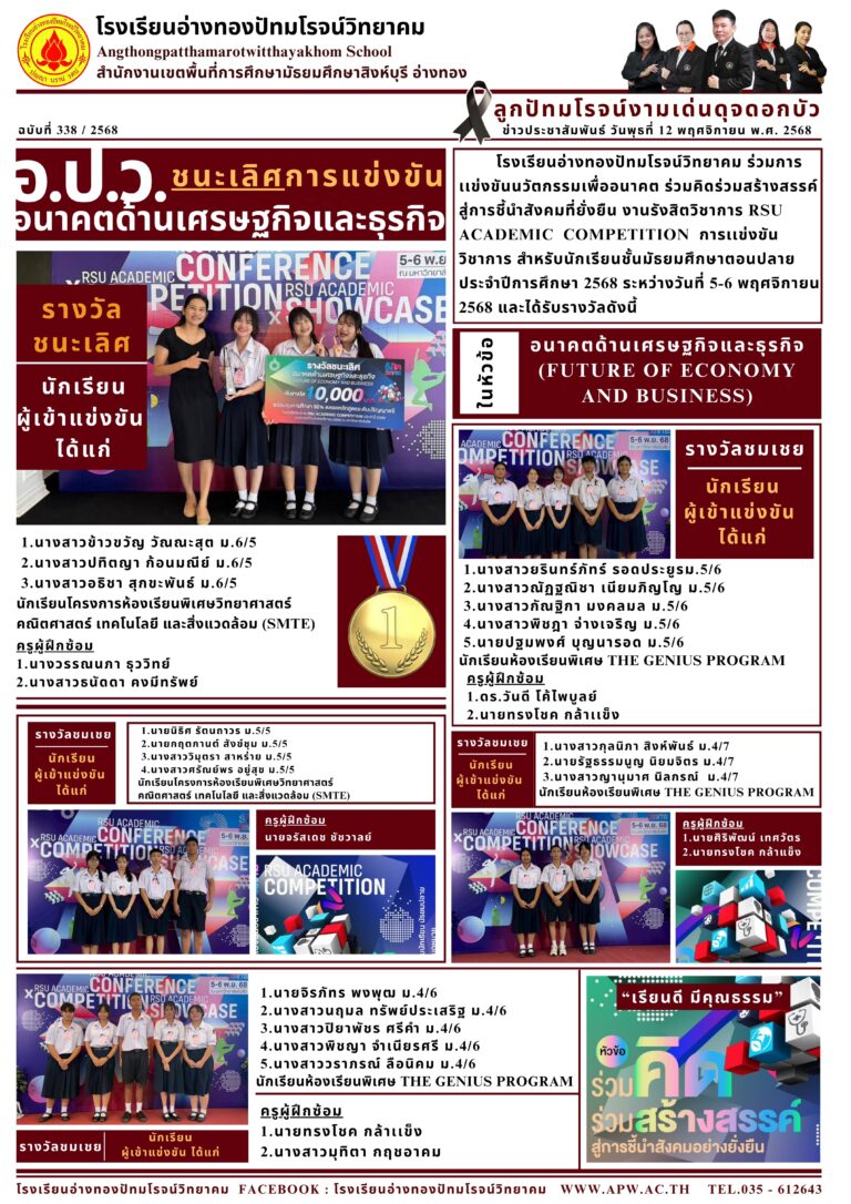 อ.ป.ว. ชนะเลิศการแข่งขัน อนาคตด้านเศรษฐกิจและธุรกิจ18 พฤศจิกายน 2025โดยโรงเรียนอ่างทองปัทมโรจน์วิทยาคมวันที่18 พฤศจิกายน 2025Read more→