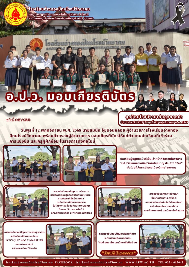 อ.ป.ว. มอบเกียรติบัตร24 พฤศจิกายน 2025โดยโรงเรียนอ่างทองปัทมโรจน์วิทยาคมวันที่24 พฤศจิกายน 2025Read more→