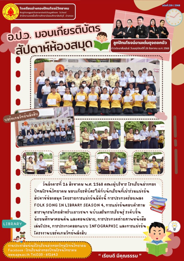 อ.ป.ว. มอบเกียรติบัตรสัปดาห์ห้องสมุด8 กันยายน 2025โดยโรงเรียนอ่างทองปัทมโรจน์วิทยาคมวันที่8 กันยายน 2025Read more→