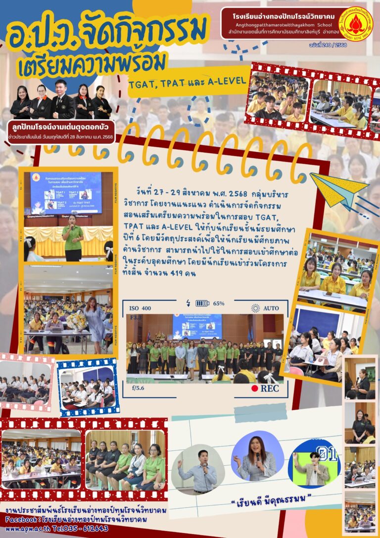 อ.ป.ว. จัดกิจกรรมเตรียมความพร้อม TGAT, TPAT และ A-LEVEL8 กันยายน 2025โดยโรงเรียนอ่างทองปัทมโรจน์วิทยาคมวันที่8 กันยายน 2025Read more→