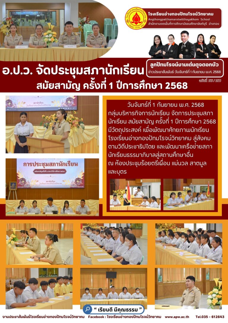 อ.ป.ว. จัดประชุมสภานักเรียนสมัยสามัญ ครั้งที่ 1 ปีการศึกษา 25688 กันยายน 2025โดยโรงเรียนอ่างทองปัทมโรจน์วิทยาคมวันที่8 กันยายน 2025Read more→