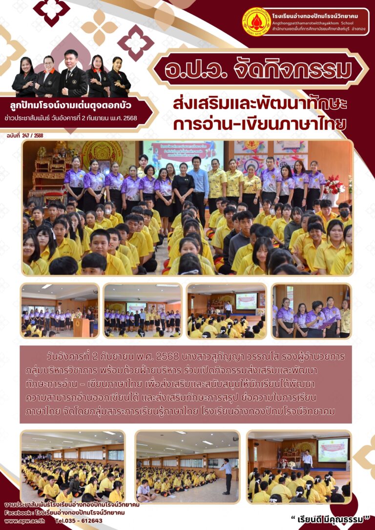 อ.ป.ว. จัดกิจกรรมส่งเสริมและพัฒนาทักษะ การอ่าน-เขียนภาษาไทย8 กันยายน 2025โดยโรงเรียนอ่างทองปัทมโรจน์วิทยาคมวันที่8 กันยายน 2025Read more→
