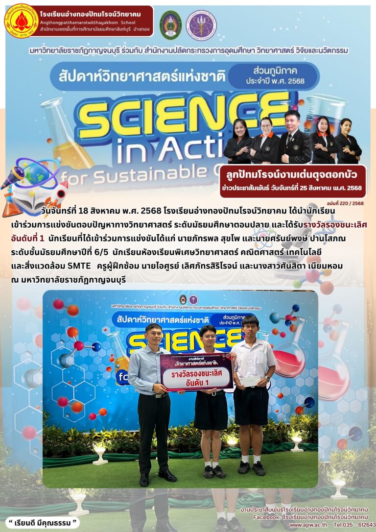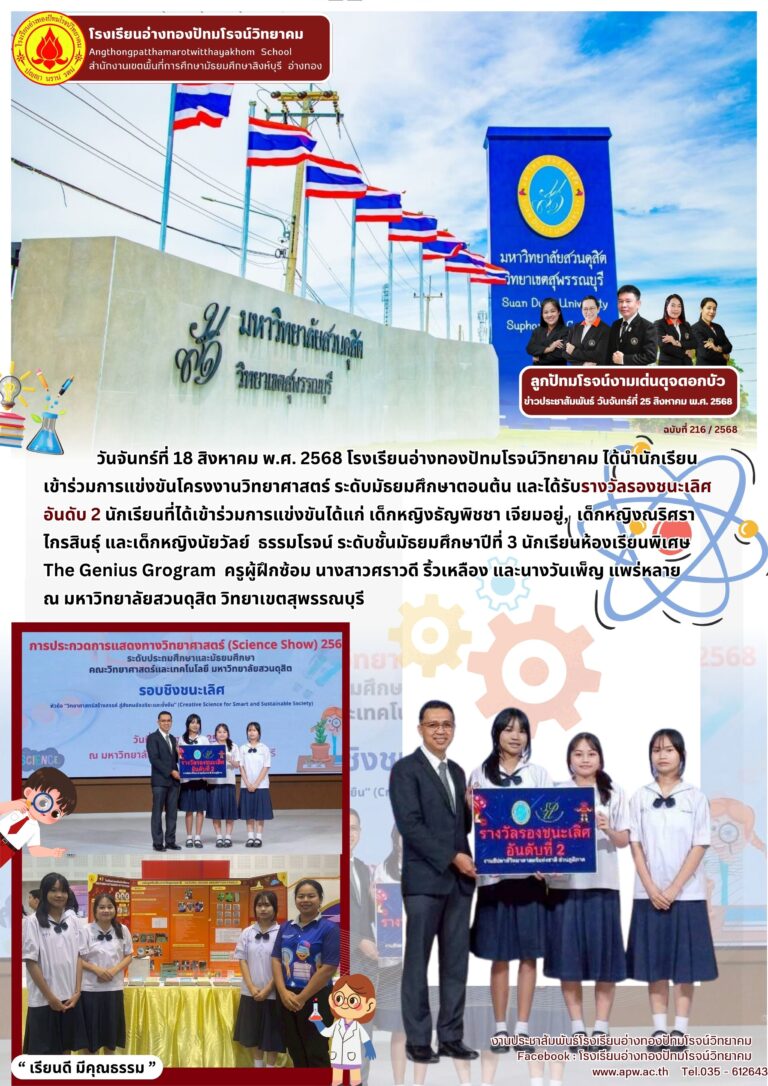 อ.ป.ว. เข้าร่วมการแข่งขันโครงงานวิทยาศาสตร์ ระดับมัธยมศึกษาตอนต้น4 กันยายน 2025โดยโรงเรียนอ่างทองปัทมโรจน์วิทยาคมวันที่4 กันยายน 2025Read more→