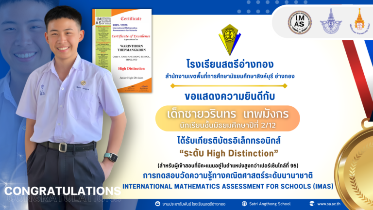 ขอแสดงความยินดีกับนักเรียนระดับชั้นมัธยมศึกษาปีที่ 3 ของโรงเรียนสตรีอ่างทอง เนื่องในโอกาสได้รับผลคะแนนการทดสอบทางการศึกษาแห่งชาติขั้นพื้นฐาน O-NET ปีการศึกษา 2568 ในรายวิชา คณิตศาสตร์ และ รายวิชา ภาษาอังกฤษ(100 คะแนน) “สูงสุดระดับประเทศ”18 มีนาคม 2026โดยsupervisorวันที่18 มีนาคม 2026Read more→