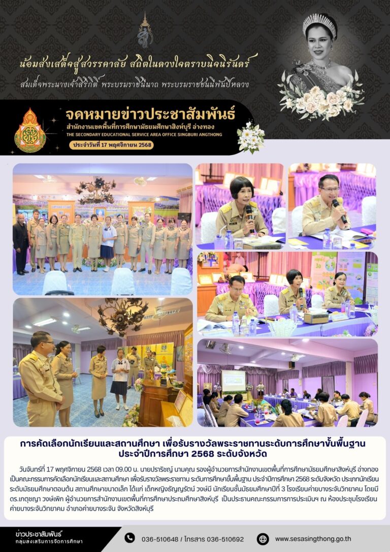 การคัดเลือกนักเรียนและสถานศึกษา เพื่อรับรางวัลพระราชทานระดับการศึกษาขั้นพื้นฐานประจำปีการศึกษา 2568 ระดับจังหวัด17 พฤศจิกายน 202518 พฤศจิกายน 2025โดยadmingameวันที่17 พฤศจิกายน 202518 พฤศจิกายน 2025Read more→