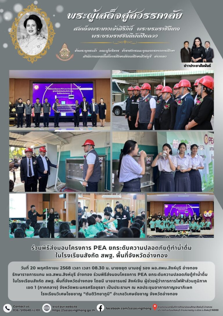 ร่วมพิธีส่งมอบโครงการ PEA ยกระดับความปลอดภัยตู้ทำน้ำดื่ม ในโรงเรียนสังกัด สพฐ. พื้นที่จังหวัดอ่างทอง20 พฤศจิกายน 2025โดยประชาสัมพันธ์วันที่20 พฤศจิกายน 2025Read more→