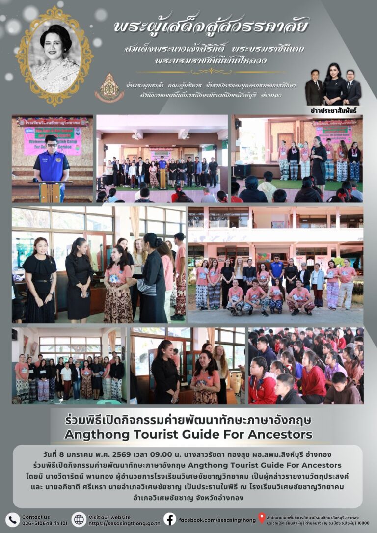 ร่วมพิธีเปิดกิจกรรมค่ายพัฒนาทักษะภาษาอังกฤษ Angthong Tourist Guide For Ancestors8 มกราคม 2026โดยประชาสัมพันธ์วันที่8 มกราคม 2026Read more→