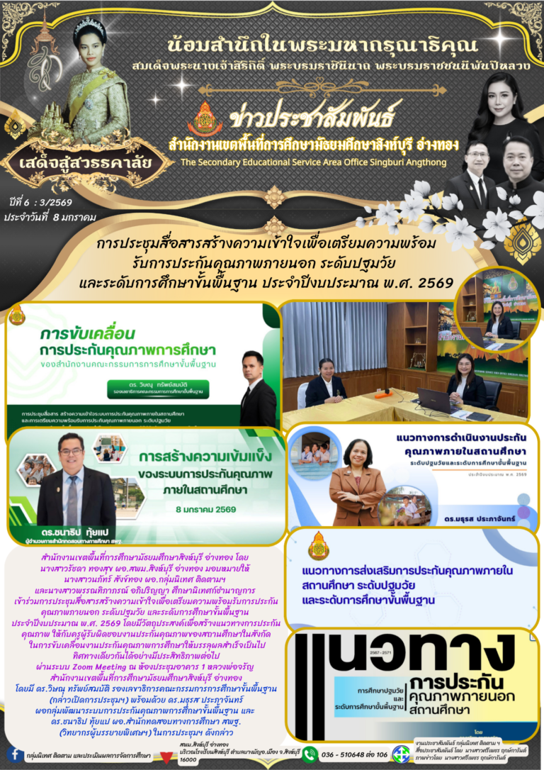 วันที่ 8 มกราคม 2569 การประชุมสื่อสารสร้างความเข้าใจเพื่อเตรียมความพร้อมรับการประกันคุณภาพภายนอก ระดับปฐมวัย และระดับการศึกษาขั้นพื้นฐาน ประจำปีงบประมาณ พ.ศ. 25698 มกราคม 2026โดยsupervisorวันที่8 มกราคม 2026Read more→