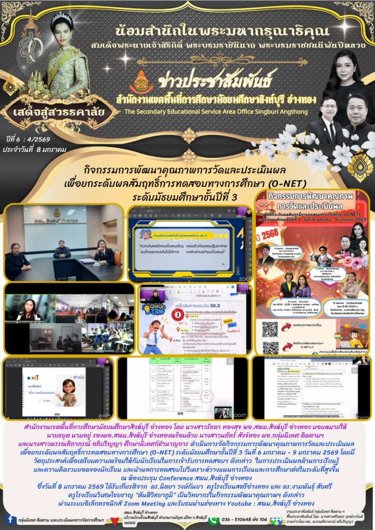 กิจกรรมพัฒนาคุณภาพการวัดและประเมินผล เพื่อยกระดับผลสัมฤทธิ์การทดสอบทางการศึกษา (O-NET) ระดับชั้นมัธยมศึกษาปีที่ 38 มกราคม 2026โดยประชาสัมพันธ์วันที่8 มกราคม 2026Read more→
