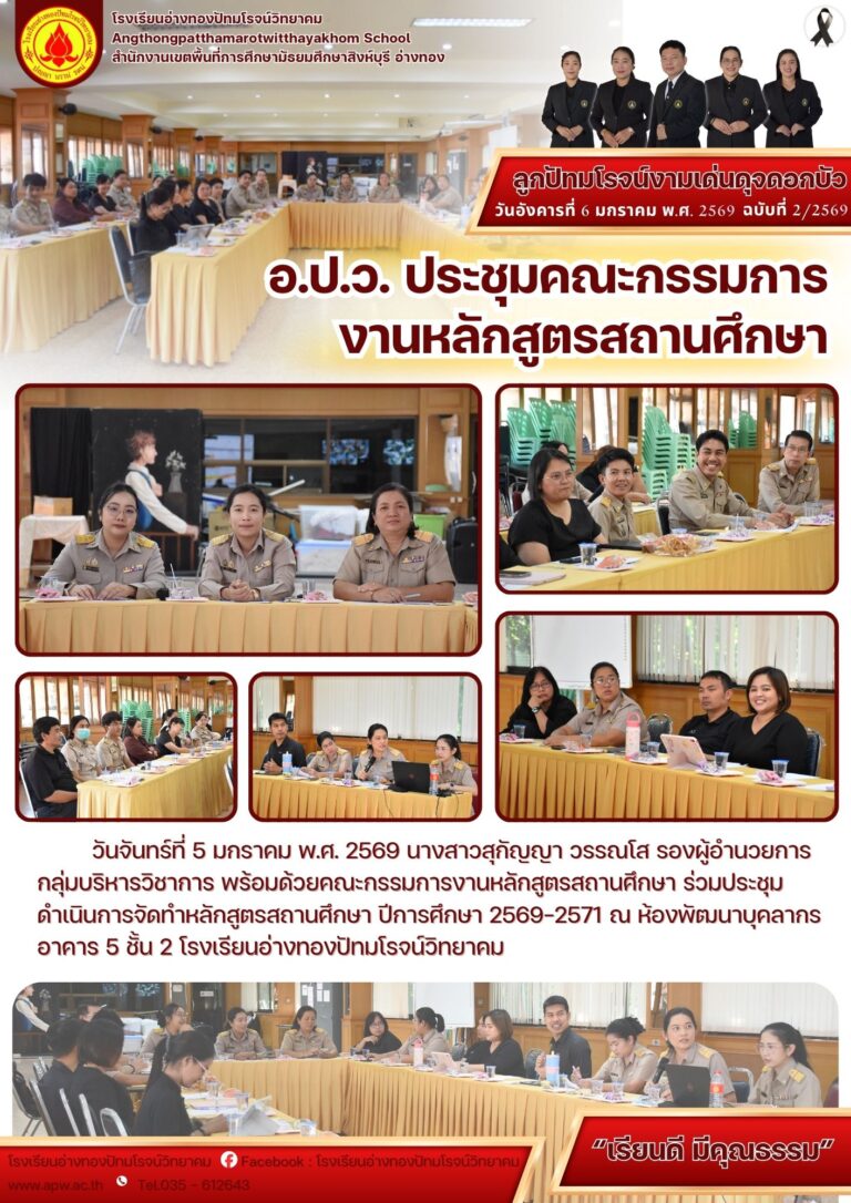 อ.ป.ว. ประชุมคณะกรรมการ งานหลักสูตรสถานศึกษา8 มกราคม 2026โดยโรงเรียนอ่างทองปัทมโรจน์วิทยาคมวันที่8 มกราคม 2026Read more→
