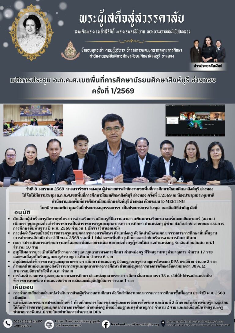 การประชุม อ.ก.ค.ศ.เขตพื้นที่การศึกษามัธยมศึกษาสิงห์บุรี อ่างทอง ครั้งที่ 1/25698 มกราคม 20269 มกราคม 2026โดยsesao5วันที่8 มกราคม 20269 มกราคม 2026Read more→