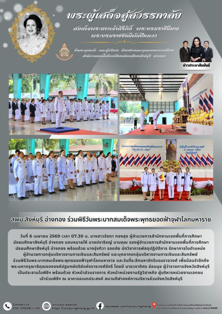สพม.สิงห์บุรี อ่างทอง ร่วมพิธีวันพระบาทสมเด็จพระพุทธยอดฟ้าจุฬาโลกมหาราช6 เมษายน 2026โดยประชาสัมพันธ์วันที่6 เมษายน 2026Read more→