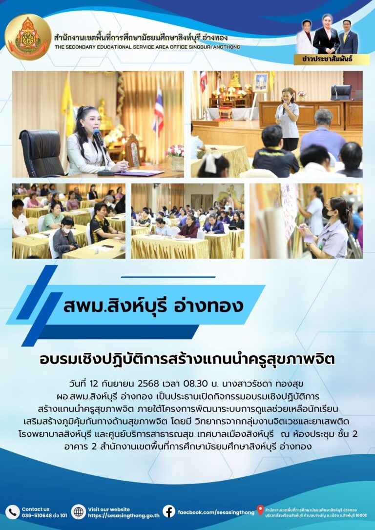 อบรมเชิงปฏิบัติการสร้างแกนนำครูสุขภาพจิต12 กันยายน 2025โดยประชาสัมพันธ์วันที่12 กันยายน 2025Read more→