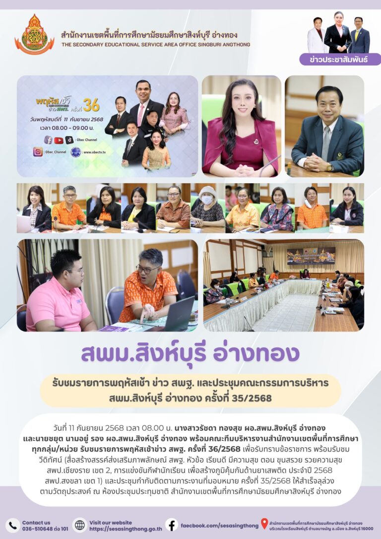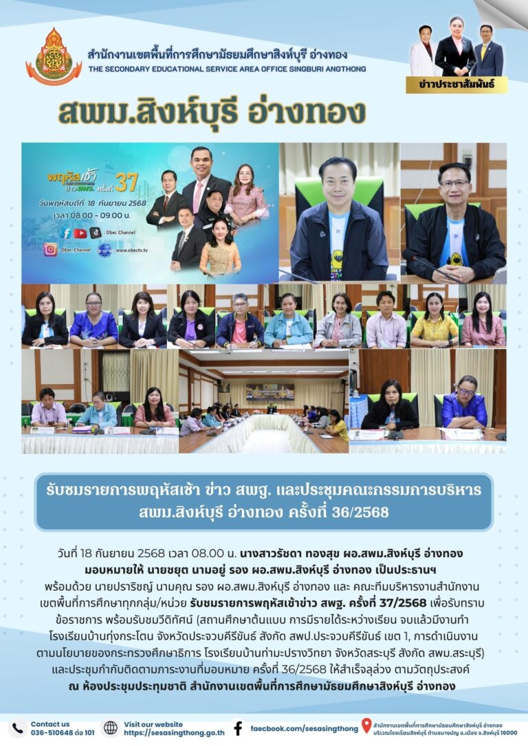รับชมรายการพฤหัสเช้า ข่าว สพฐ. และประชุมคณะกรรมการบริหาร สพม.สิงห์บุรี อ่างทอง ครั้งที่ 36/256818 กันยายน 2025โดยประชาสัมพันธ์วันที่18 กันยายน 2025Read more→