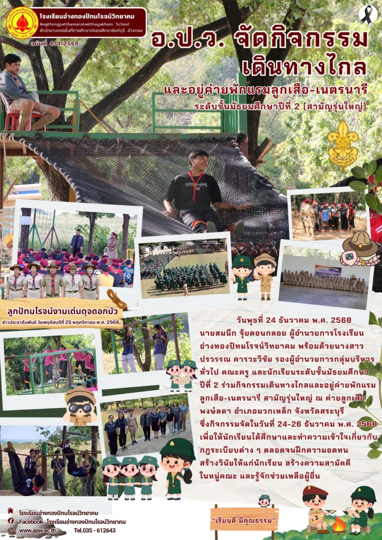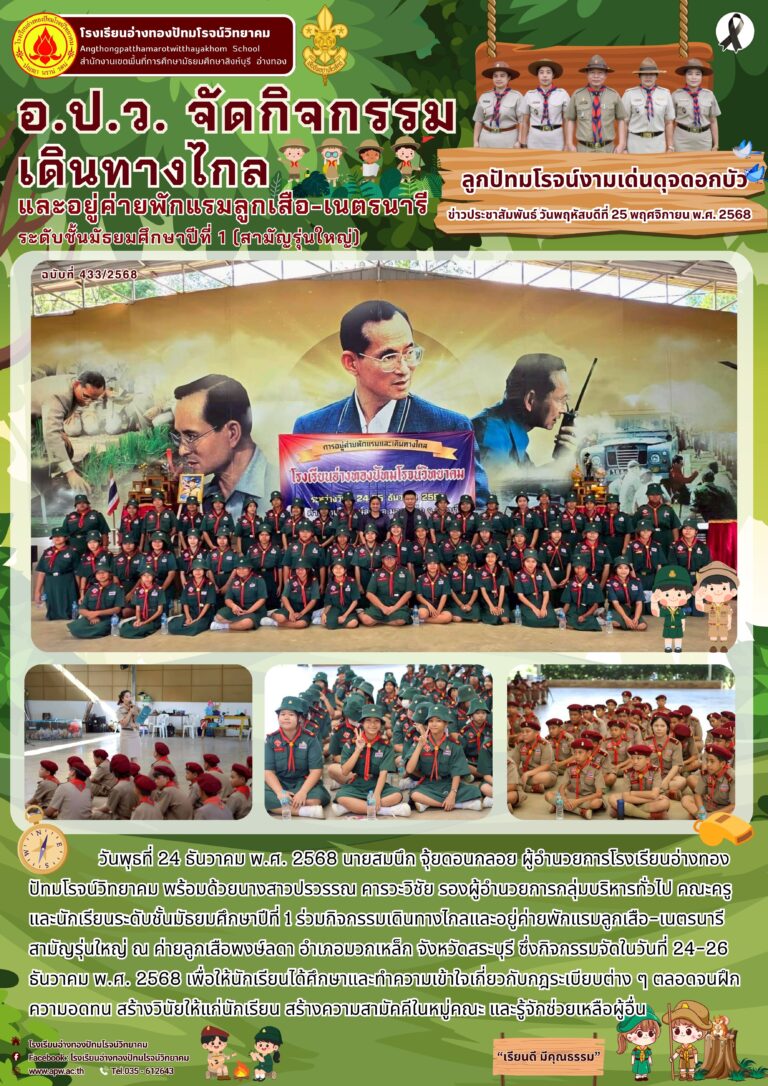 อ.ป.ว. จัดกิจกรรมเดินทางไกลและอยู่ค่ายพักแรมลูกเสือ-เนตรนารี ระดับชั้นมัธยมศึกษาปีที่ 1 (สามัญรุ่นใหญ่)26 ธันวาคม 2025โดยโรงเรียนอ่างทองปัทมโรจน์วิทยาคมวันที่26 ธันวาคม 2025Read more→