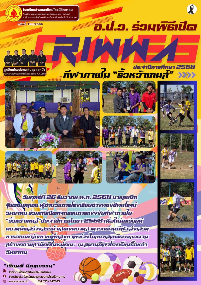 อ.ป.ว. ร่วมพิธีเปิด กีฬาภายใน “ริ้วหว้าเกมส์”ประจำปีการศึกษา 256826 ธันวาคม 2025โดยโรงเรียนอ่างทองปัทมโรจน์วิทยาคมวันที่26 ธันวาคม 2025Read more→