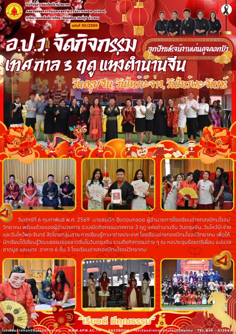 อ.ป.ว. จัดกิจกรรมวันตรุษจีน, วันไหว้บ๊ะจ่าง, วันไหว้พระจันทร์18 กุมภาพันธ์ 2026โดยโรงเรียนอ่างทองปัทมโรจน์วิทยาคมวันที่18 กุมภาพันธ์ 2026Read more→