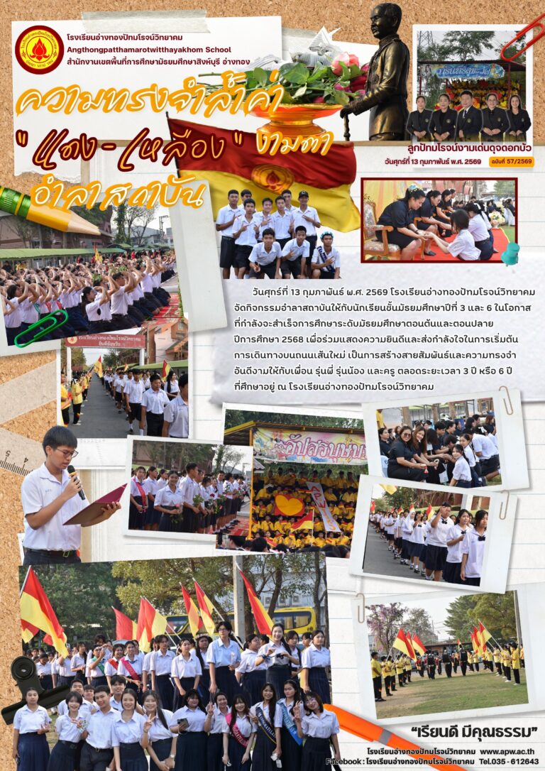 ความทรงจำล้ำค่า “ แดง – เหลือง ” งามตาอำลาสถาบัน18 กุมภาพันธ์ 2026โดยโรงเรียนอ่างทองปัทมโรจน์วิทยาคมวันที่18 กุมภาพันธ์ 2026Read more→