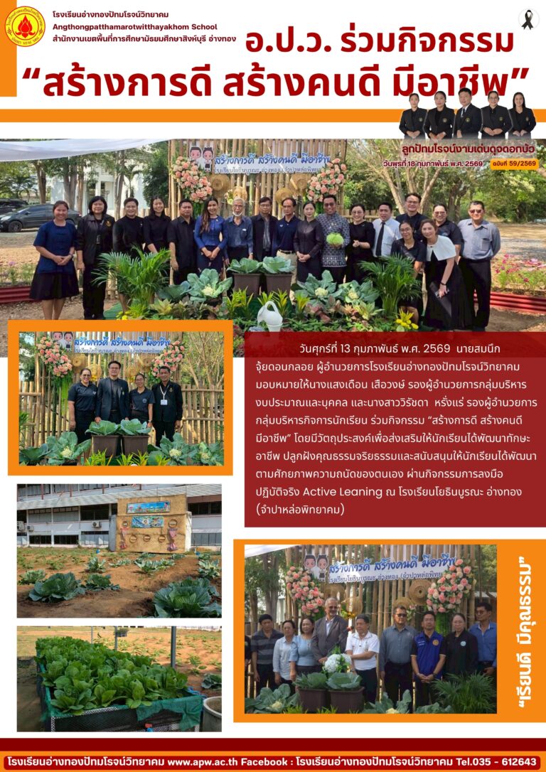 อ.ป.ว. ร่วมกิจกรรม“สร้างการดี สร้างคนดี มีอาชีพ”18 กุมภาพันธ์ 2026โดยโรงเรียนอ่างทองปัทมโรจน์วิทยาคมวันที่18 กุมภาพันธ์ 2026Read more→