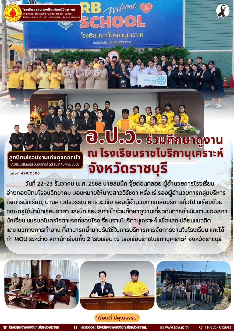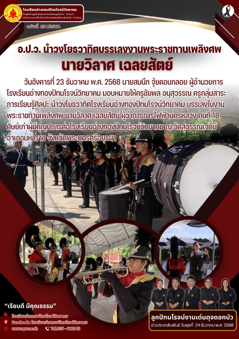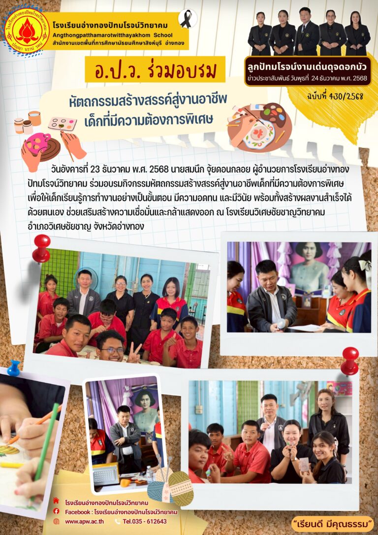 อ.ป.ว. ขอขอบคุณโรงพยาบาลอ่างทอง26 ธันวาคม 2025โดยโรงเรียนอ่างทองปัทมโรจน์วิทยาคมวันที่26 ธันวาคม 2025Read more→