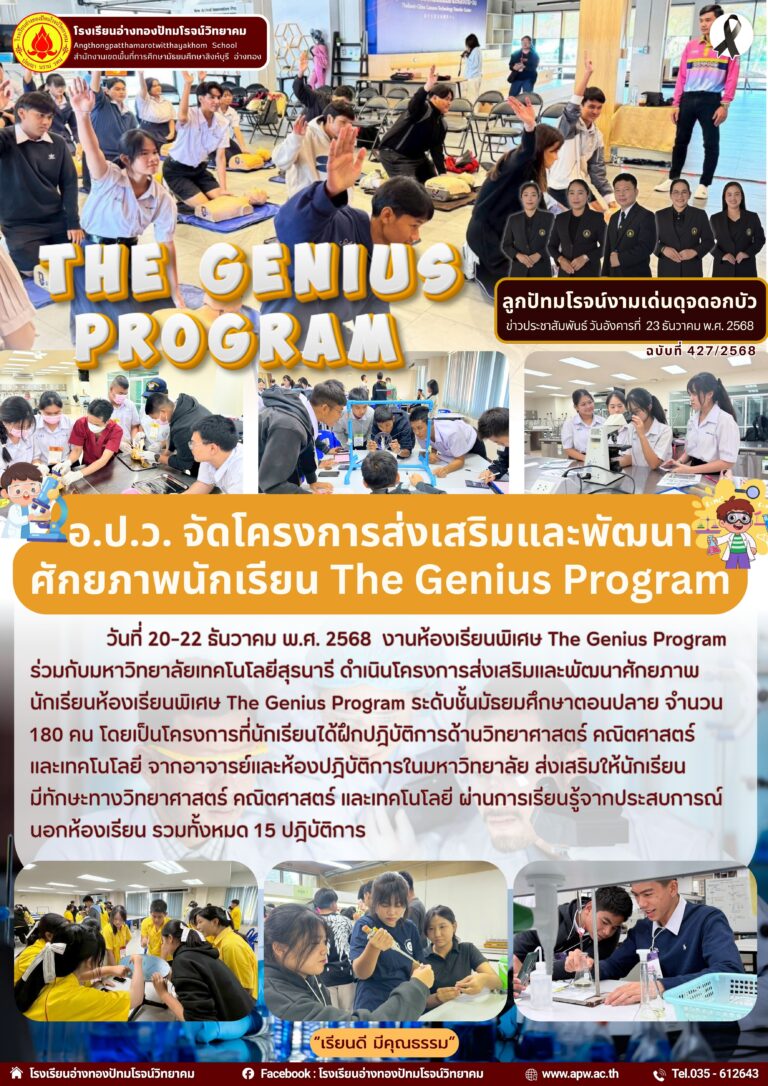 อ.ป.ว. จัดโครงการส่งเสริมและพัฒนา ศักยภาพนักเรียน The Genius Program26 ธันวาคม 2025โดยโรงเรียนอ่างทองปัทมโรจน์วิทยาคมวันที่26 ธันวาคม 2025Read more→