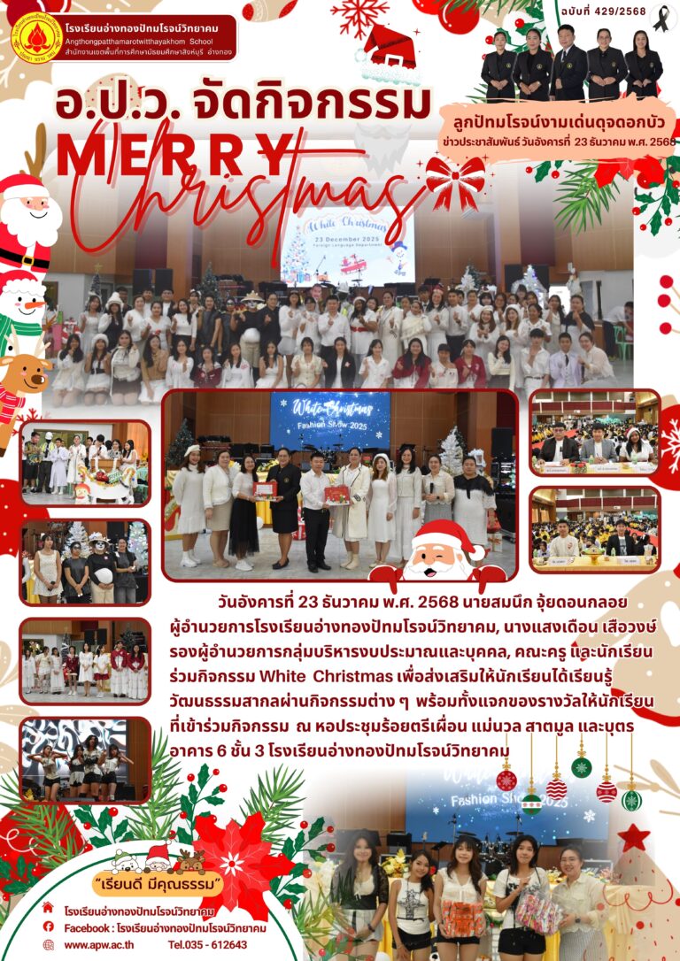 อ.ป.ว. จัดกิจกรรม White Christmas26 ธันวาคม 2025โดยโรงเรียนอ่างทองปัทมโรจน์วิทยาคมวันที่26 ธันวาคม 2025Read more→