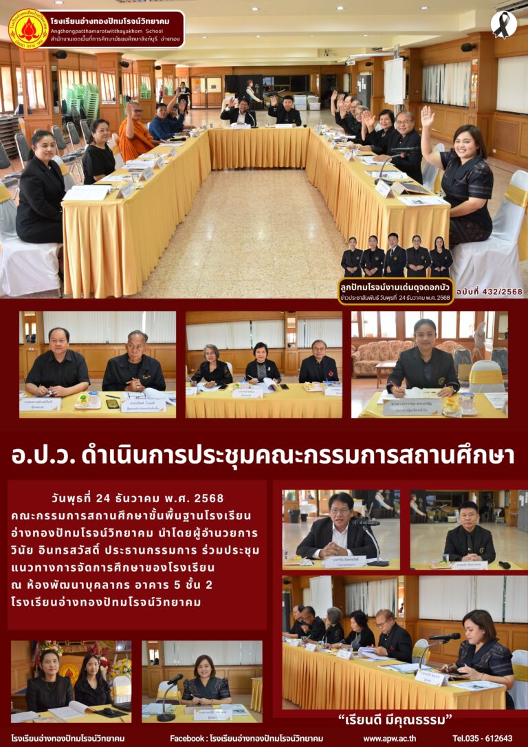 อ.ป.ว. ดำเนินการประชุมคณะกรรมการสถานศึกษา26 ธันวาคม 2025โดยโรงเรียนอ่างทองปัทมโรจน์วิทยาคมวันที่26 ธันวาคม 2025Read more→