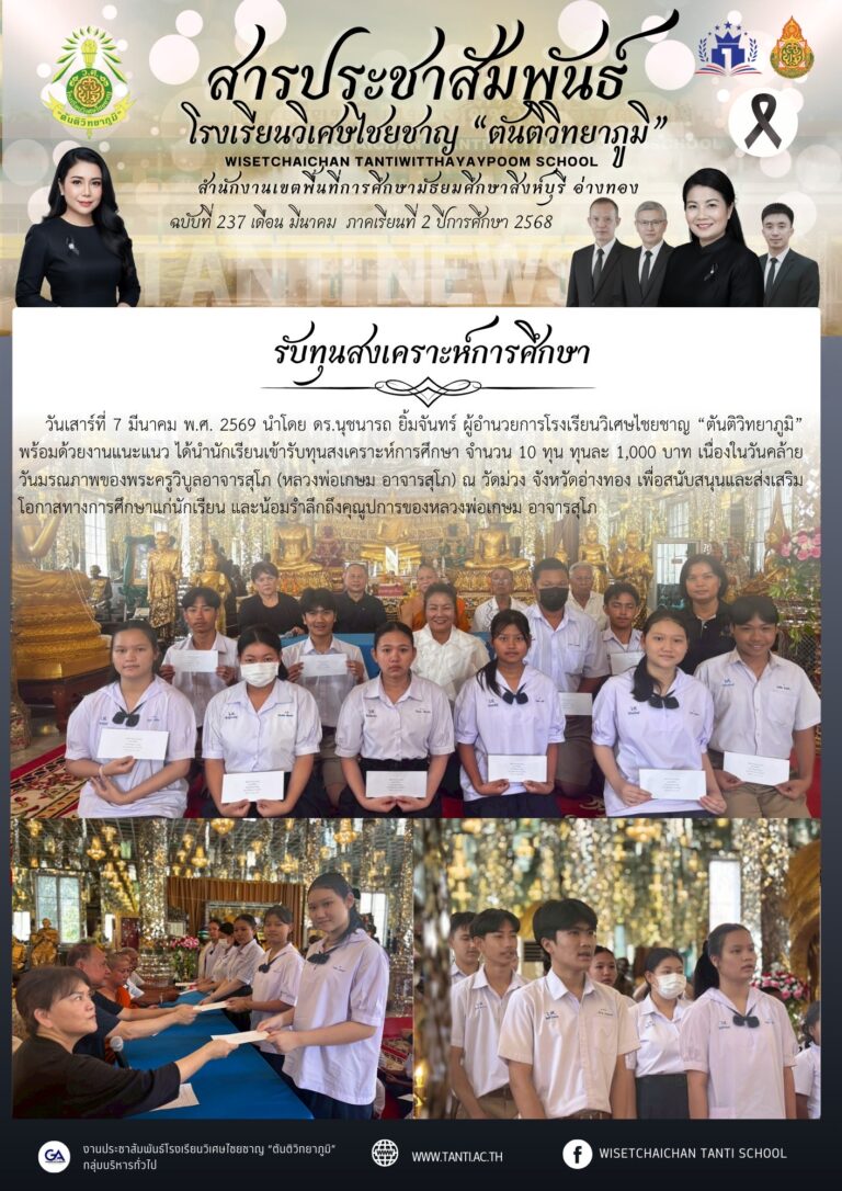 ว.ศ. ได้นำนักเรียนเข้ารับทุนสงเคราะห์การศึกษา10 มีนาคม 202610 มีนาคม 2026โดยโรงเรียนวิเศษไชยชาญ "ตันติวิทยาภูมิ"วันที่10 มีนาคม 202610 มีนาคม 2026Read more→