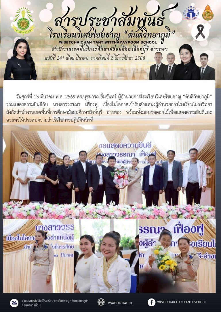 ว.ศ. ร่วมแสดงความยินดีกับ ผอ.วรรณา เฟื่องฟู16 มีนาคม 2026โดยโรงเรียนวิเศษไชยชาญ "ตันติวิทยาภูมิ"วันที่16 มีนาคม 2026Read more→