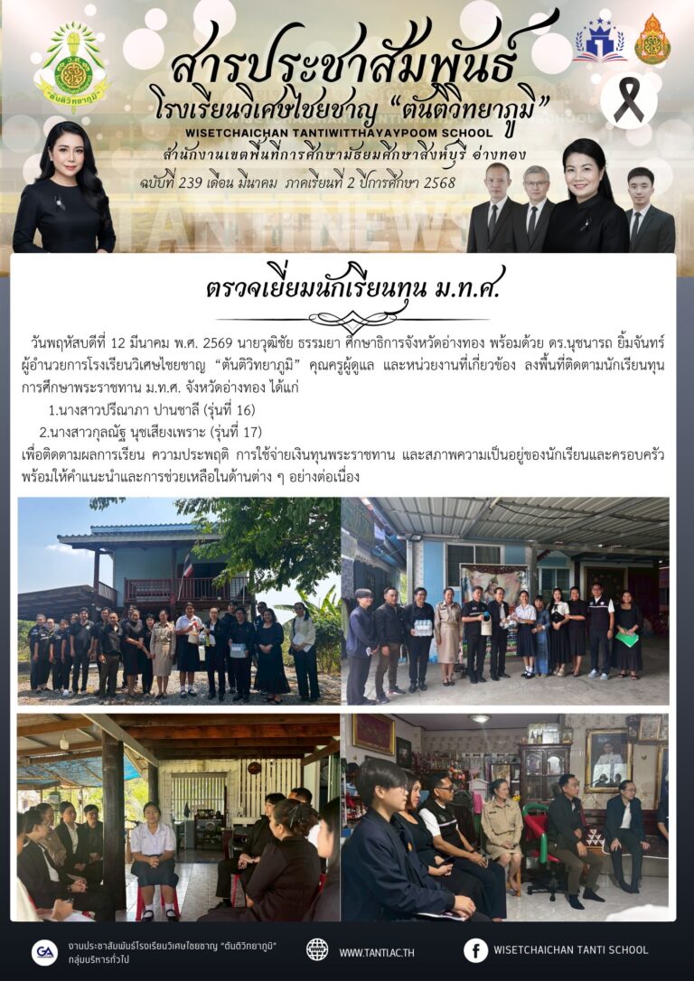 ว.ศ. ลงพื้นที่ติดตามนักเรียนทุนการศึกษาพระราชทาน ม.ท.ศ.16 มีนาคม 2026โดยโรงเรียนวิเศษไชยชาญ "ตันติวิทยาภูมิ"วันที่16 มีนาคม 2026Read more→