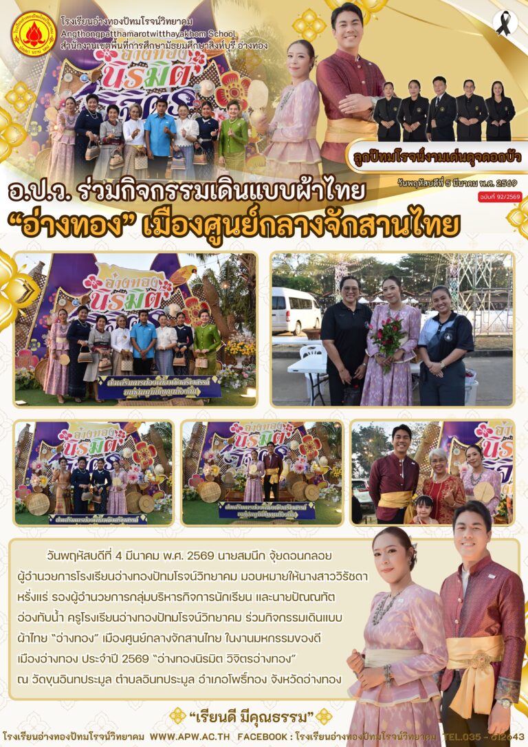อ.ป.ว. ร่วมกิจกรรมเดินแบบผ้าไทย “อ่างทอง” เมืองศูนย์กลางจักสานไทย5 มีนาคม 2026โดยโรงเรียนอ่างทองปัทมโรจน์วิทยาคมวันที่5 มีนาคม 2026Read more→