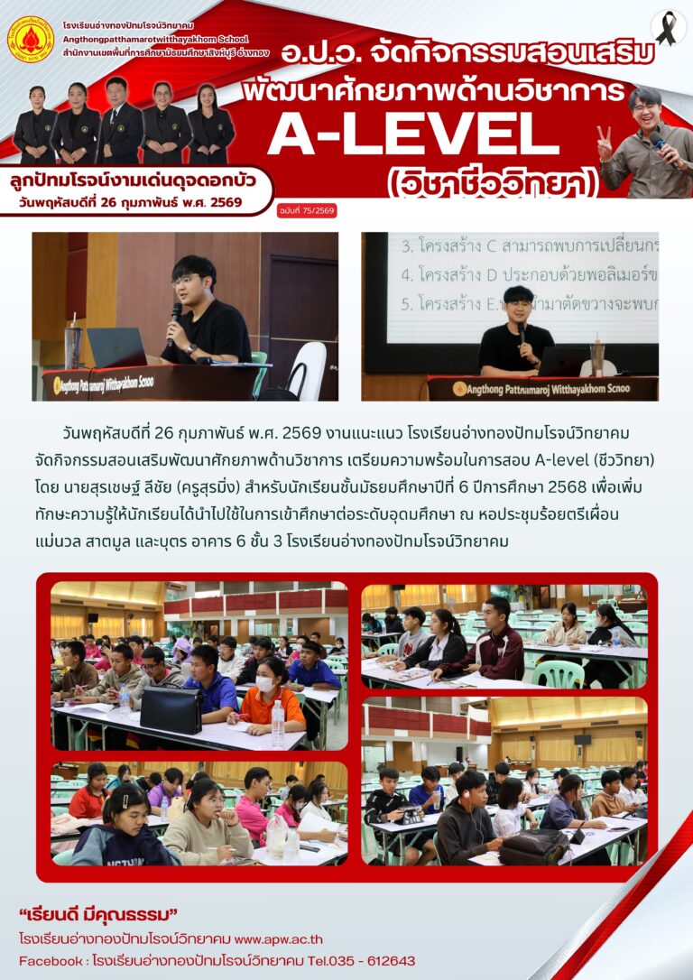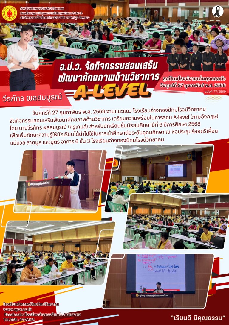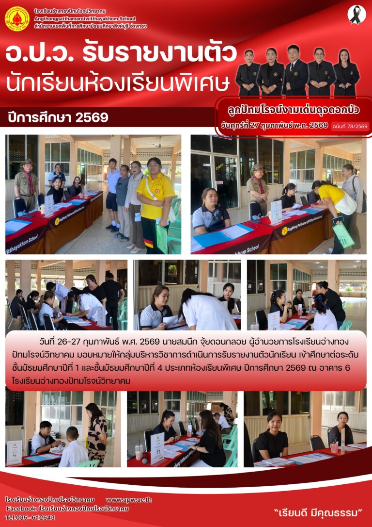 อ.ป.ว. รับรายงานตัวนักเรียนห้องเรียนพิเศษ ม.1 และ ม.42 มีนาคม 2026โดยโรงเรียนอ่างทองปัทมโรจน์วิทยาคมวันที่2 มีนาคม 2026Read more→