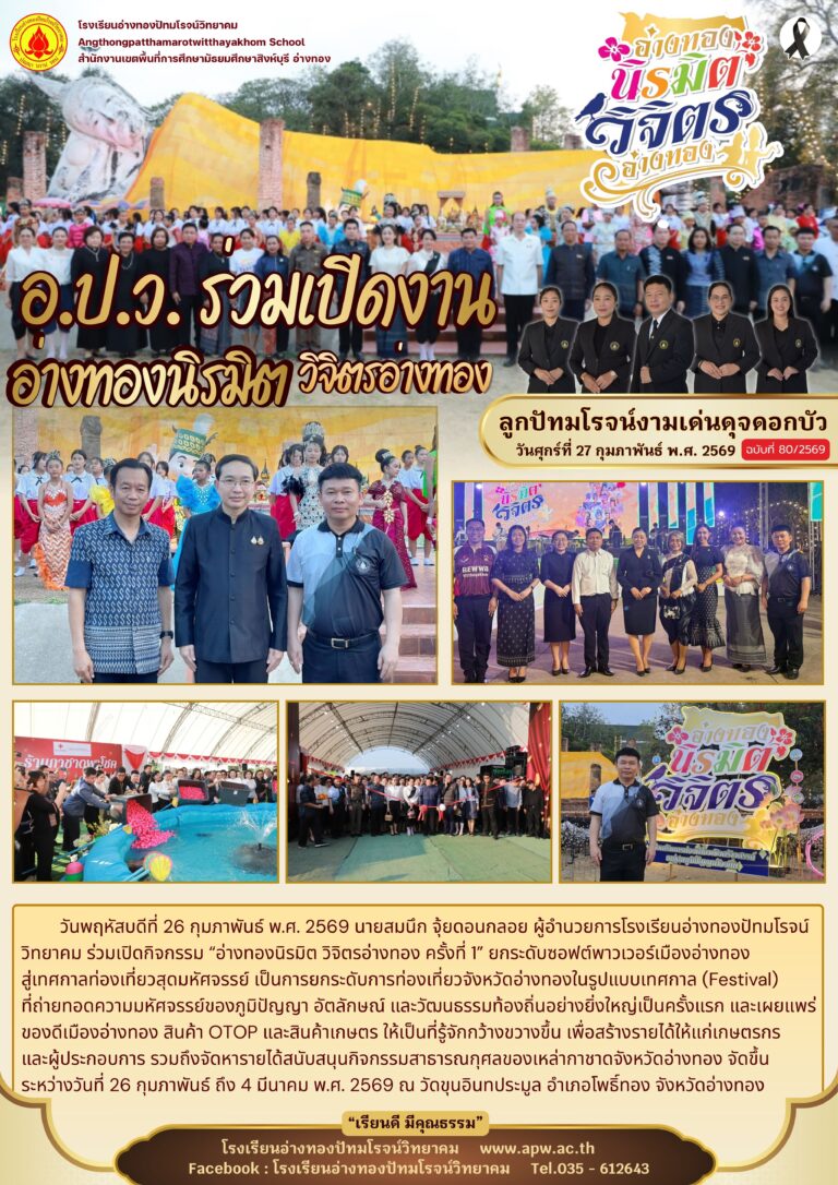 อ.ป.ว. ร่วมเปิดงานอ่างทองนิรมิตวิจิตรอ่างทอง2 มีนาคม 2026โดยโรงเรียนอ่างทองปัทมโรจน์วิทยาคมวันที่2 มีนาคม 2026Read more→
