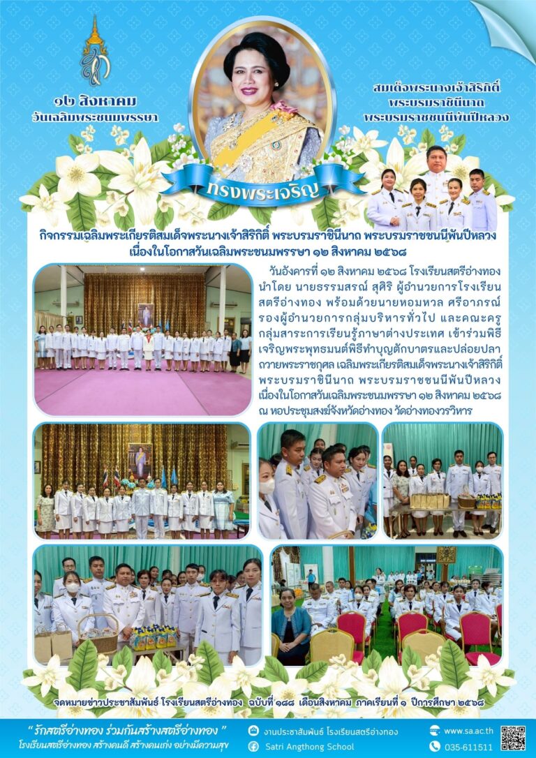 กิจกรรมเฉลิมพระเกียรติสมเด็จพระนางเจ้าสิริกิติ์ พระบรมราชินีนาถ พระบรมราชชนนีพันปีหลวง เนื่องในโอกาสวันเฉลิมพระชนมพรรษา ๑๒ สิงหาคม ๒๕๖๘13 สิงหาคม 2025โดยโรงเรียนสตรีอ่างทองวันที่13 สิงหาคม 2025Read more→