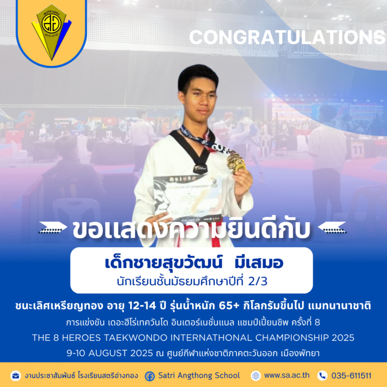 ขอแสดงความยินดีกับเด็กชายสุขวัฒน์ มีเสมอ นักเรียนชั้น ม. 2/3 โรงเรียนสตรีอ่างทอง13 สิงหาคม 2025โดยโรงเรียนสตรีอ่างทองวันที่13 สิงหาคม 2025Read more→