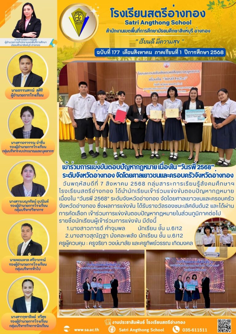 นักเรียนเข้าร่วมการแข่งขันตอบปัญหากฎหมาย เนื่องใน “วันรพี 2568” ระดับจังหวัดอ่างทอง จัดโดยศาลเยาวชนและครอบครัวจังหวัดอ่างทอง13 สิงหาคม 2025โดยโรงเรียนสตรีอ่างทองวันที่13 สิงหาคม 2025Read more→