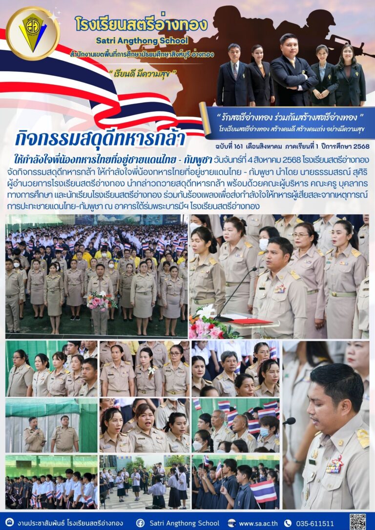 กิจกรรมสดุดีทหารกล้า ให้กำลังใจพี่น้องทหารไทยที่อยู่ชายแดนไทย – กัมพูชา6 สิงหาคม 2025โดยโรงเรียนสตรีอ่างทองวันที่6 สิงหาคม 2025Read more→