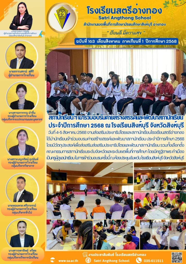 สภานักเรียน ฯเข้าร่วมอบรมค่ายสร้างสรรค์และพัฒนาสภานักเรียน ประจำปีการศึกษา 2568 ณ โรงเรียนสิงห์บุรี จังหวัดสิงห์บุรี6 สิงหาคม 2025โดยโรงเรียนสตรีอ่างทองวันที่6 สิงหาคม 2025Read more→