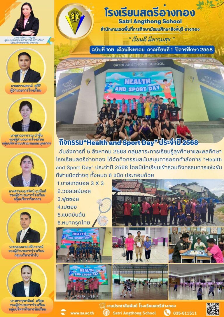 กิจกรรม“Health and Sport Day” ประจำปี 25686 สิงหาคม 2025โดยโรงเรียนสตรีอ่างทองวันที่6 สิงหาคม 2025Read more→
