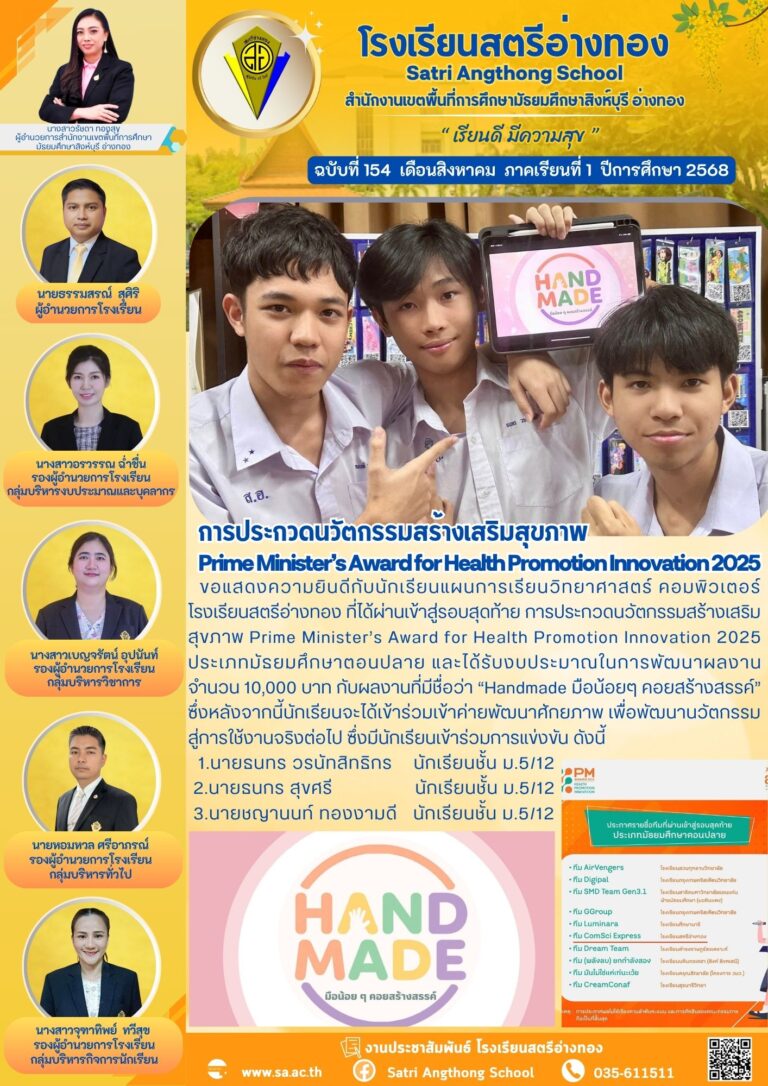การประกวดนวัตกรรมสร้างเสริมสุขภาพ Prime Minister’s Award for Health Promotion Innovation 20254 สิงหาคม 2025โดยโรงเรียนสตรีอ่างทองวันที่4 สิงหาคม 2025Read more→