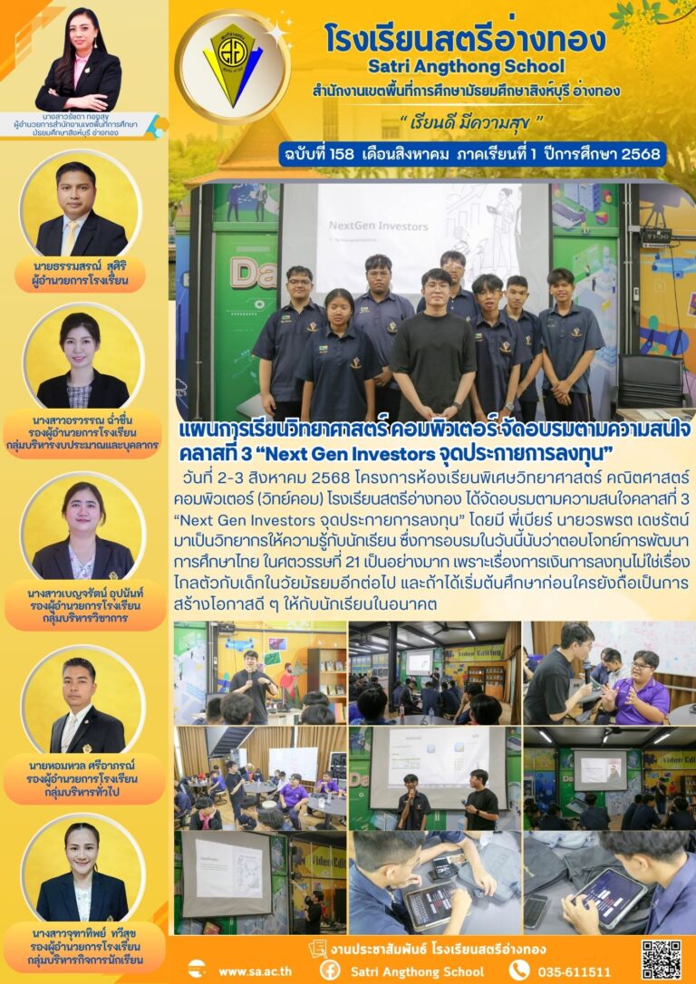 แผนการเรียนวิทยาศาสตร์ คอมพิวเตอร์ จัดอบรมตามความสนใจคลาสที่ 3 “Next Gen Investors จุดประกายการลงทุน”4 สิงหาคม 2025โดยโรงเรียนสตรีอ่างทองวันที่4 สิงหาคม 2025Read more→
