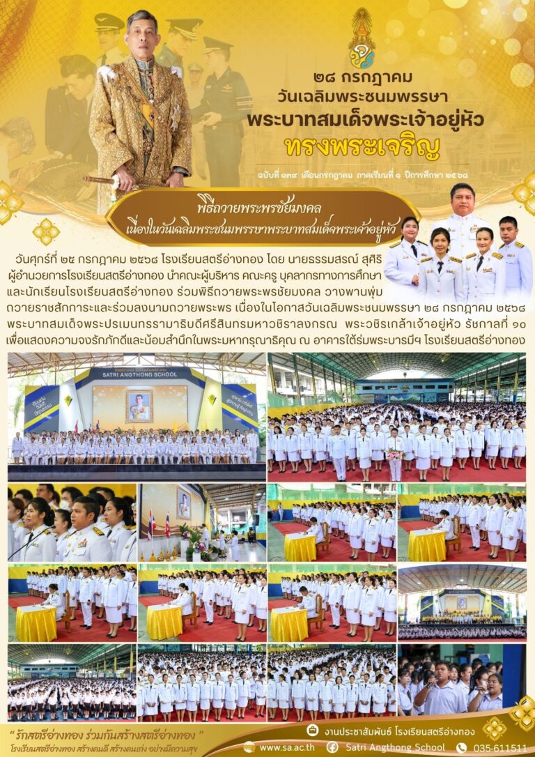พิธีถวายพระพรชัยมงคล เนื่องในวันเฉลิมพระชนมพรรษาพระบาทสมเด็จพระเจ้าอยู่หัว29 กรกฎาคม 2025โดยโรงเรียนสตรีอ่างทองวันที่29 กรกฎาคม 2025Read more→
