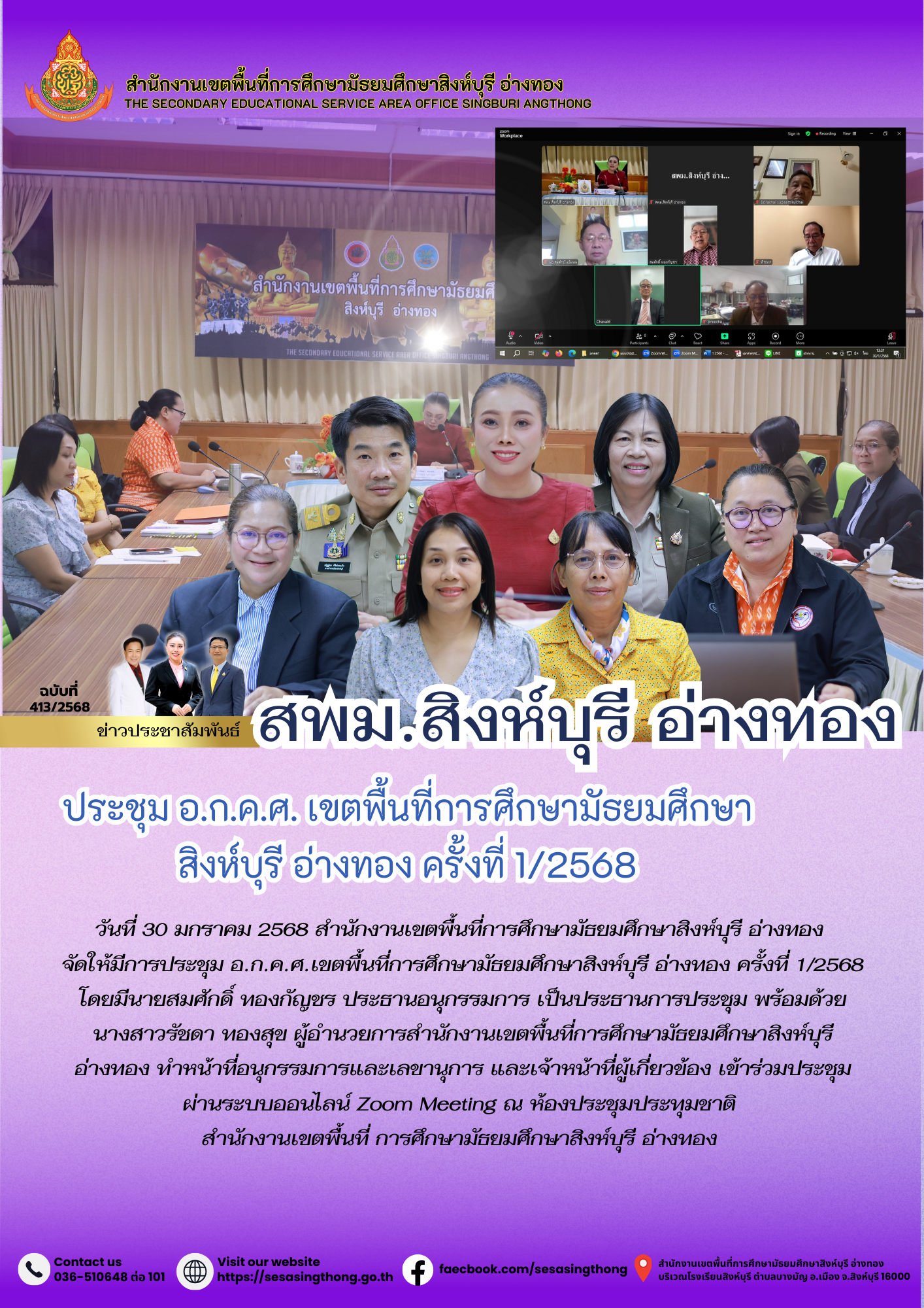 ประชุม อ.ก.ค.ศ. เขตพื้นที่การศึกษามัธยมศึกษาสิงห์บุรี อ่างทอง ครั้งที่ 1/2568
