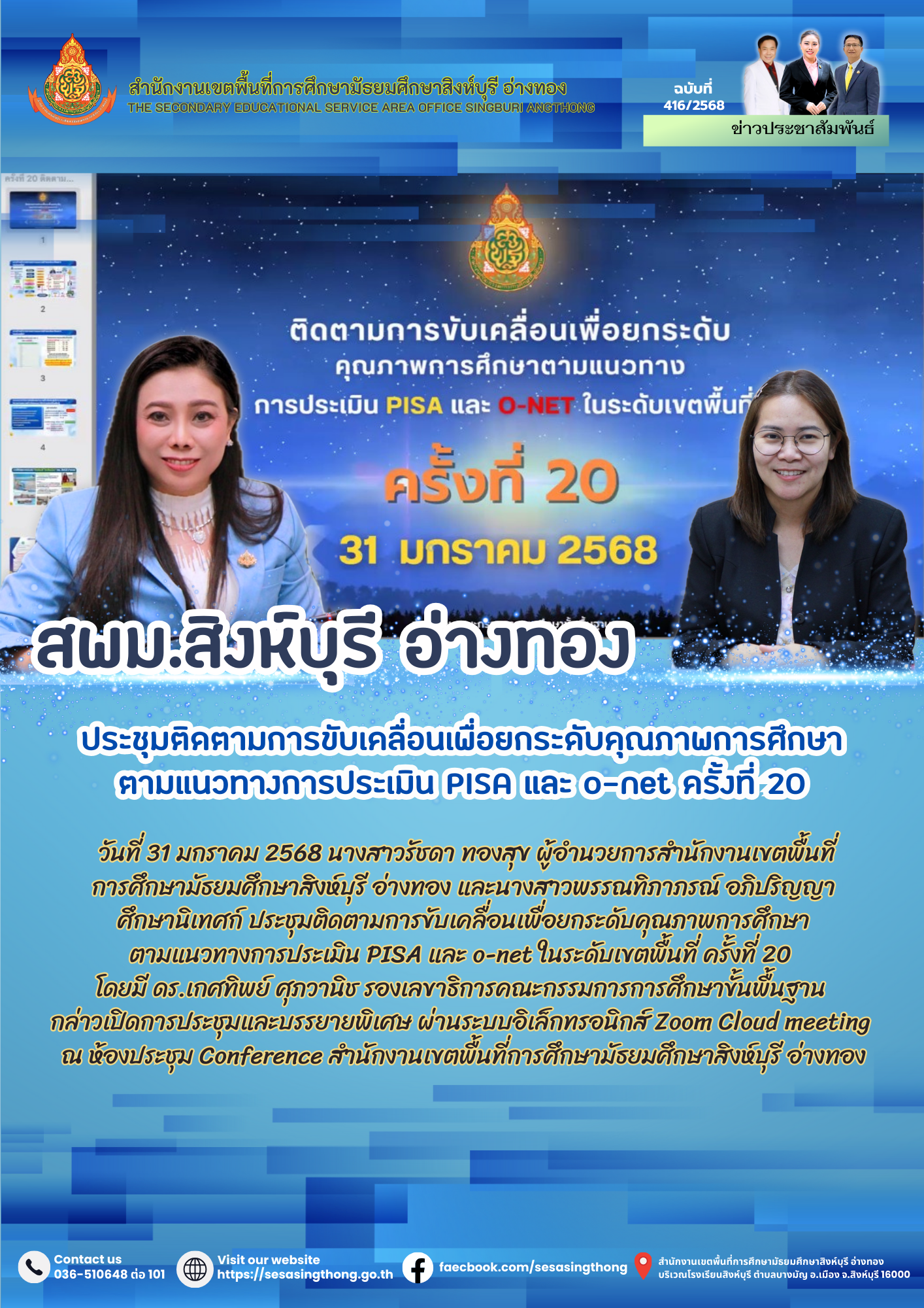 ประชุมติดตามการขับเคลื่อนเพื่อยกระดับคุณภาพการศึกษาตามแนวทางการประเมิน PISA และ o-net ครั้งที่ 20