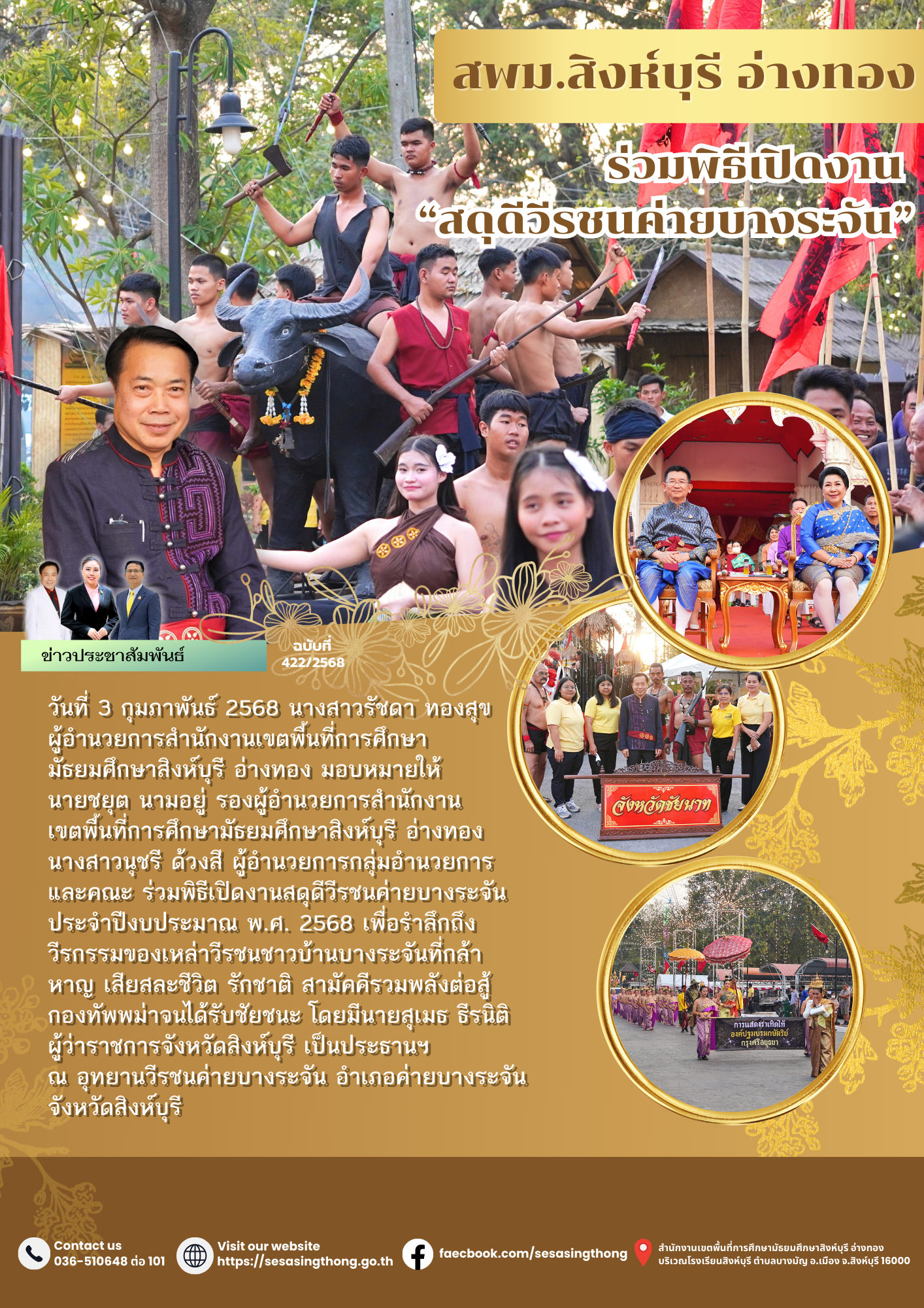 ร่วมพิธีเปิดงาน “สดุดีวีรชนค่ายบางระจัน”