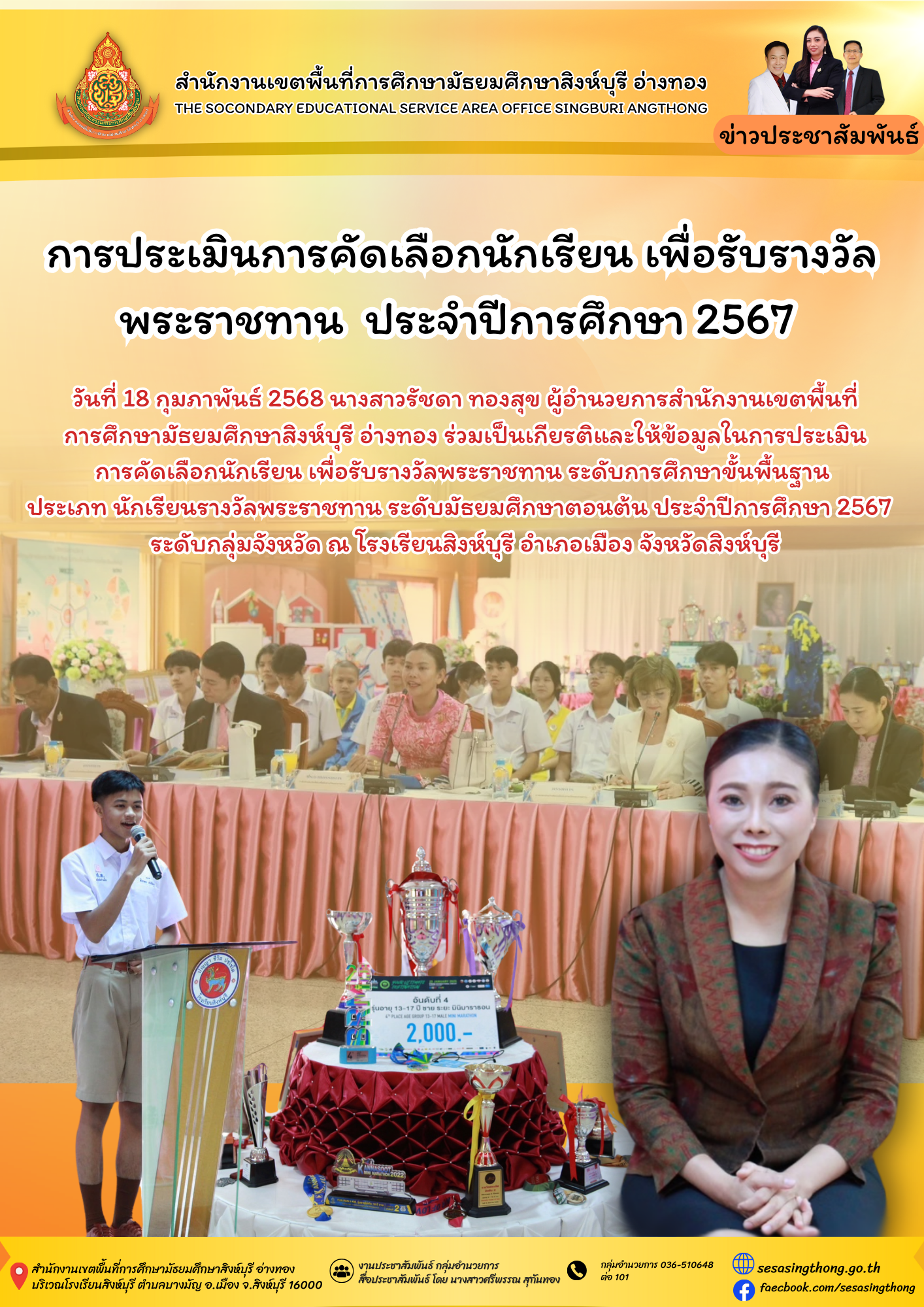 การประเมินการคัดเลือกนักเรียน เพื่อรับรางวัลพระราชทาน ประจำปีการศึกษา 2567