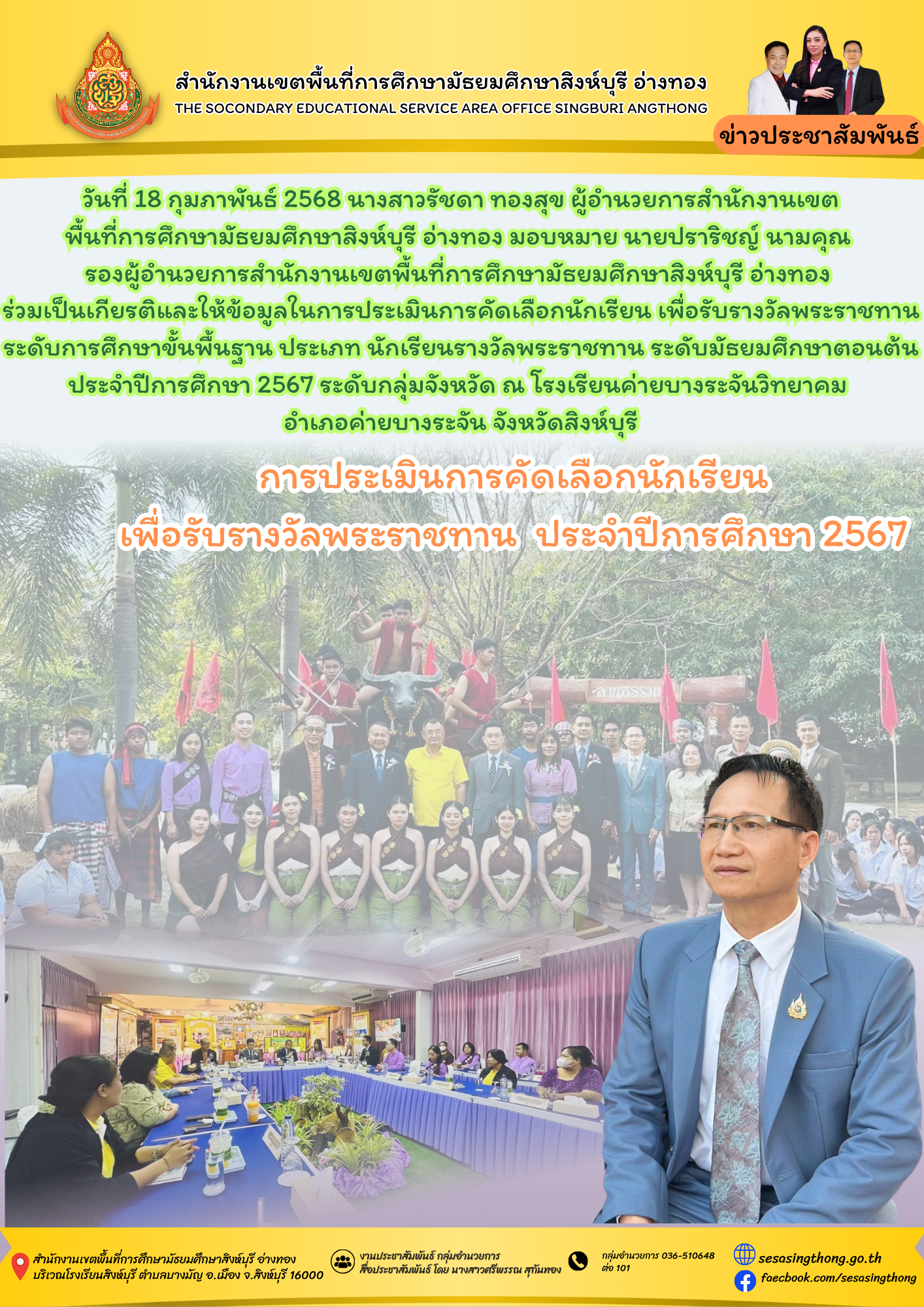 การประเมินการคัดเลือกนักเรียน เพื่อรับรางวัลพระราชทาน ประจำปีการศึกษา 2567