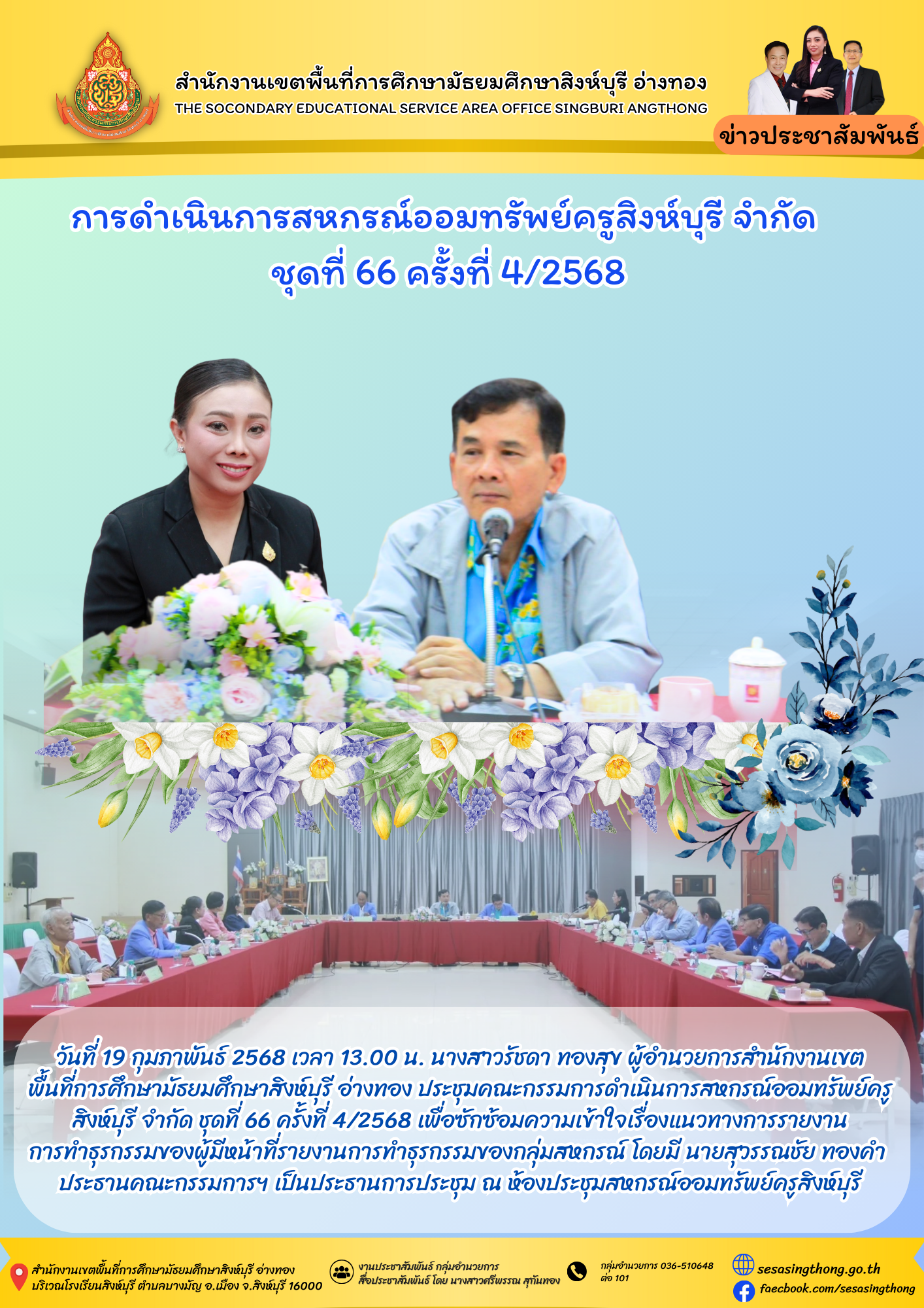 การดำเนินการสหกรณ์ออมทรัพย์ครูสิงห์บุรี จำกัด ชุดที่ 66 ครั้งที่ 4/2568
